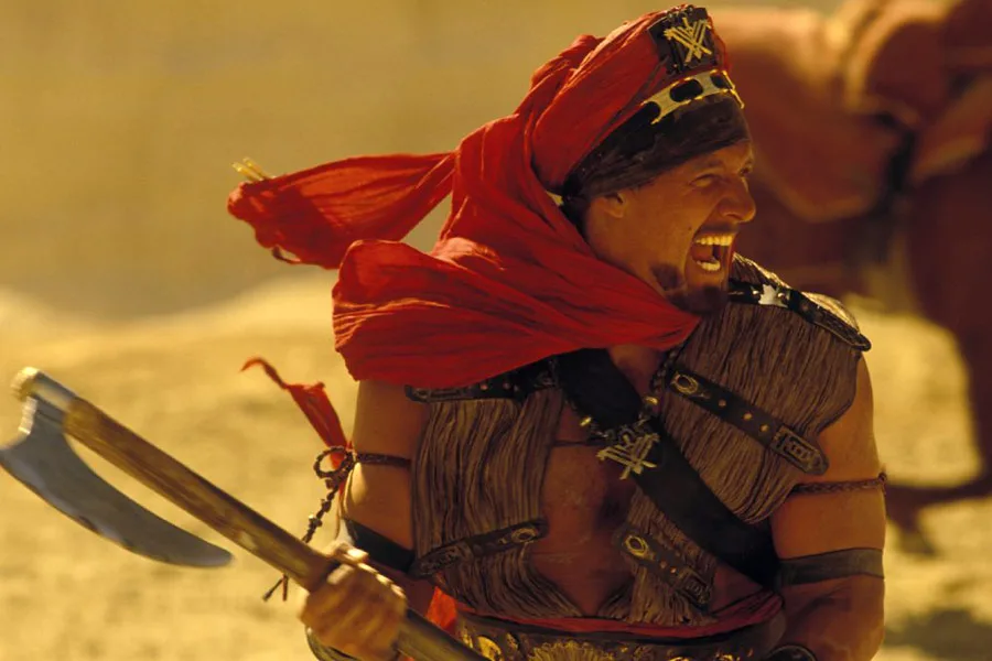 Pustynny wojownik walczy przeciwko armii okrutnego Memnona, która niszczy jego ojczyznę. Aby osłabić wroga, Mathayus porywa służącą mu czarodziejkę Kasandrę.