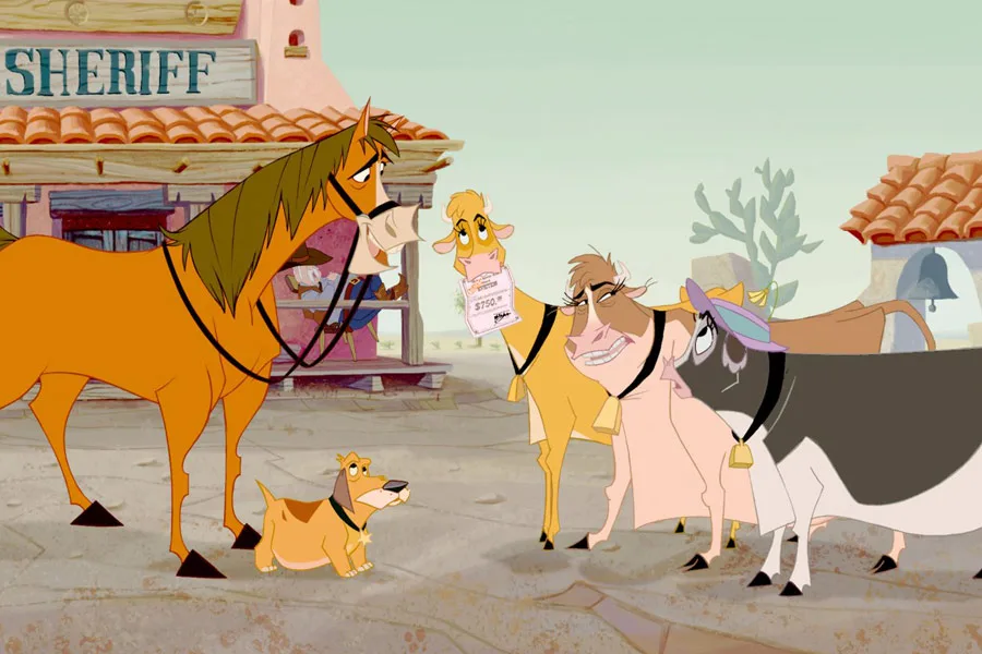 Aby farma Pearl nie trafiła pod młotek, trzy krowy wyruszają złapać bandytę i dzięki temu zgarnąć nagrodę.