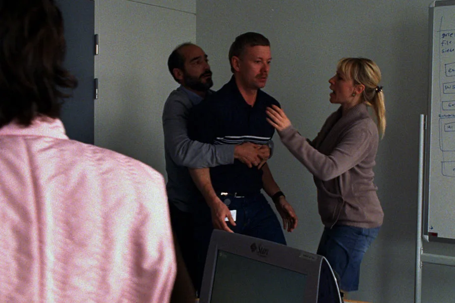 Szefowi firmy komputerowej brak odwagi, by podejmować decyzje. Chcąc temu zapobiec, wynajmuje aktora, który gra rolę fikcyjnego prezesa, na którym skupia się złość pracowników.