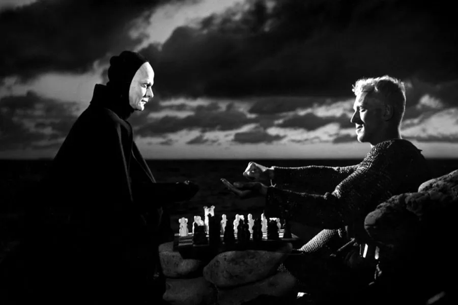 Metaforyczna opowieść o rycerzu powracającym z wyprawy krzyżowej. Staje on w szachowym pojedynku ze Śmiercią, w którym stawką jest jego życie.