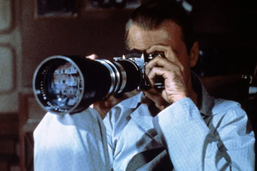 Uwięziony na wózku inwalidzkim fotograf obserwuje przez okno sąsiadów. Jednego z nich podejrzewa o zabójstwo żony.