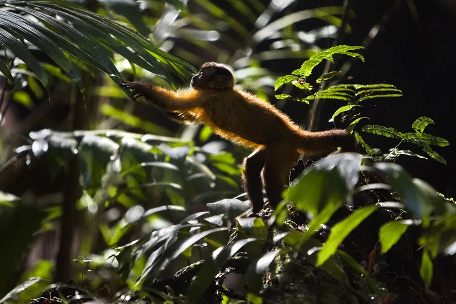 Ocalała z katastrofy lotniczej kapucynka uczy się przetrwać w nowych warunkach - dzikich lasach Amazonii.
