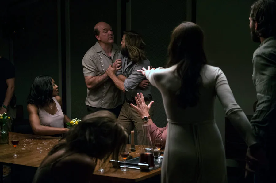 Podczas kolacji ze znajomymi w dawnym domu mężczyzna zaczyna podejrzewać swoją byłą żonę i jej nowego męża o złowieszcze intencje co do ich gości.