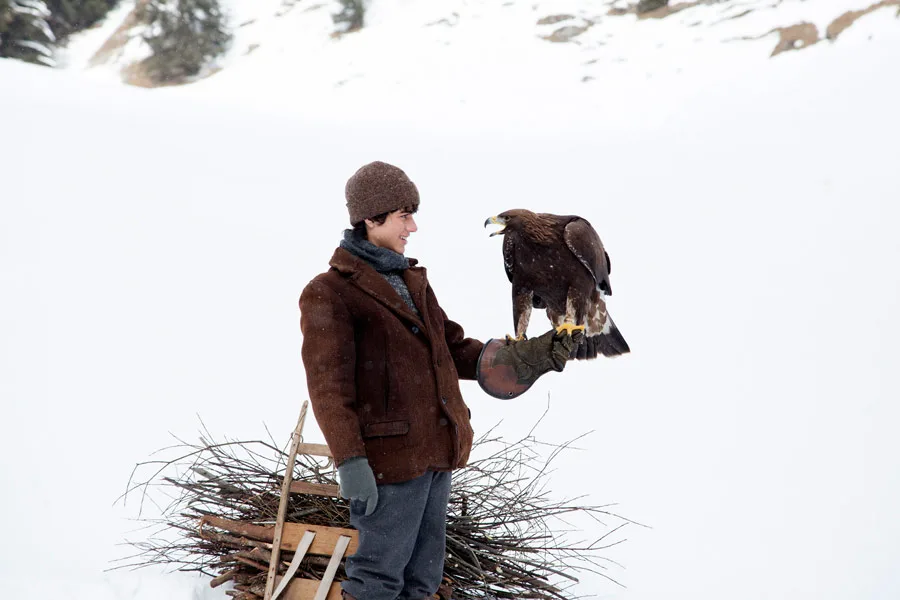 Młody chłopiec próbuje ocalić orła, który został wyrzucony z gniazda.