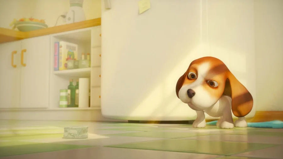 Hobby, bardzo ciekawski piesek, próbuje się zaprzyjaźnić z kostką lodu. To nie lada wyzwanie, zwłaszcza że kostka
