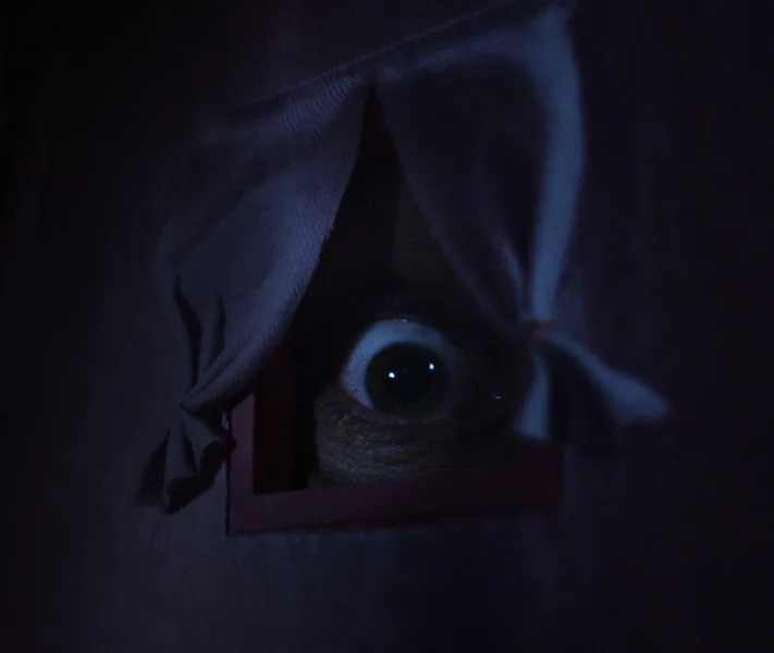Nastoletnia dziewczyna budzi się w domku dla lalek. Przerażona zauważa, że przez okienko przygląda się jej wielkie oko.